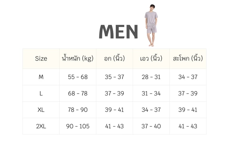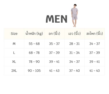 สัดส่วนที่แนะนำสำหรับการสวมใส่ทรง Relaxed Fit" สัมผัสประสบการณ์การพักผ่อนระดับพรีเมียมด้วยเนื้อผ้า 80s Tencel Modal 210g ที่ให้ความนุ่มละเอียดและทิ้งตัวสวยเป็นพิเศษ ทรงเสื้อผ้าของเราออกแบบมาให้หลวมพอดี (Relaxed Fit) เพื่อความคล่องตัวและไม่เทอะทะในทุกท่วงท่าการนอน